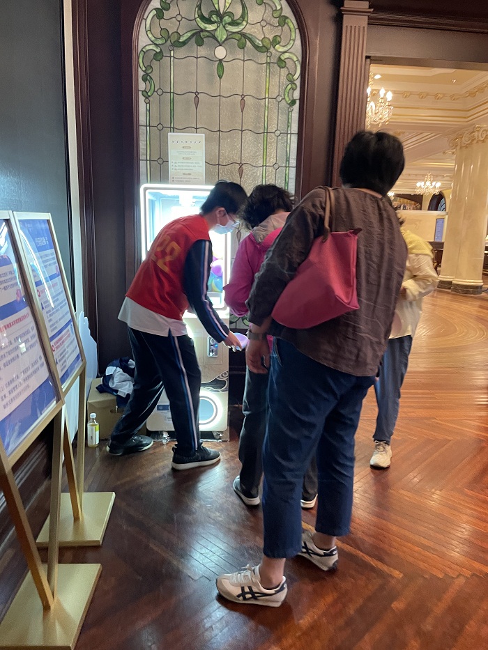 在指引岗服务中,来自向东中学的志愿者们熟练地为游客指引参观路线、解答疑问,并认真地维持参观秩序,确保观众获得良好的观展体验。在“世界与‘一带一路’交易所文化展”互动区的扭蛋机前,他们更是积极主动地将秩序维护与热情引导相结合,让观众在游戏中感受证券文化的魅力。